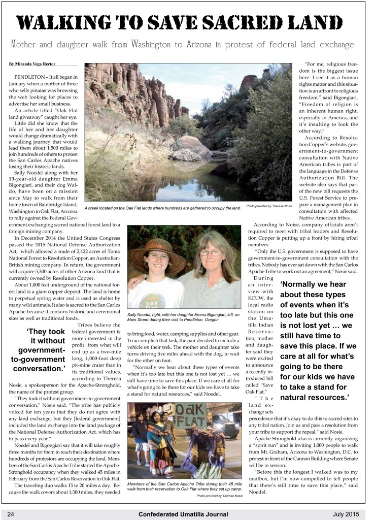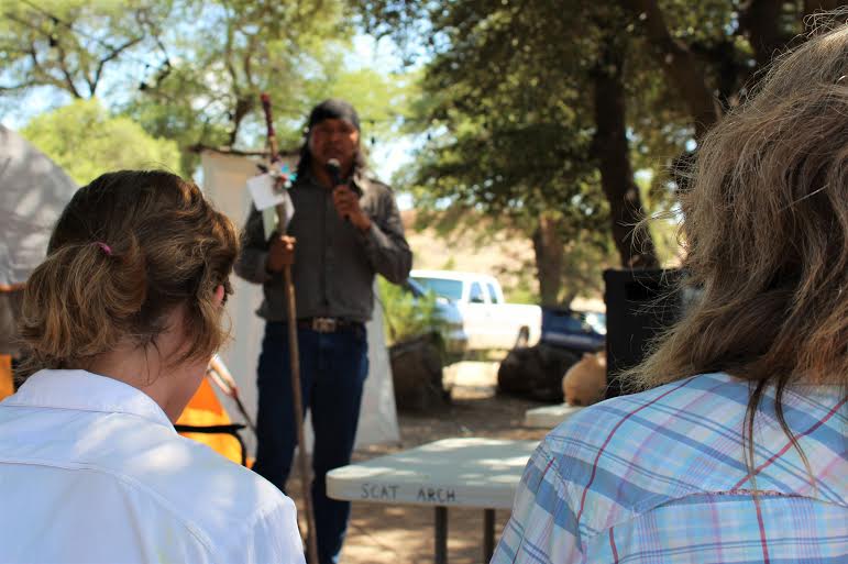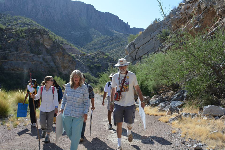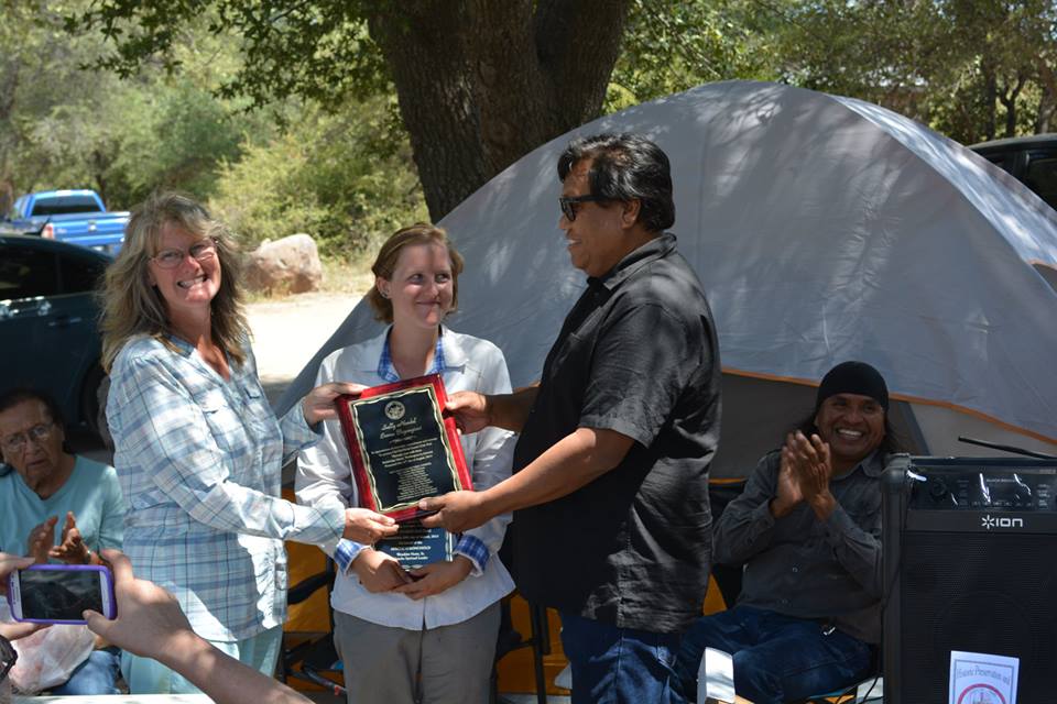 Receiving a plaque from the San Carlos Apache Nation upon completing our walk (photo courtesy of Anna Jeffrey)Walking into Oak Flat (photo courtesy of Anna Jeffrey) photo by Eileen Dailey